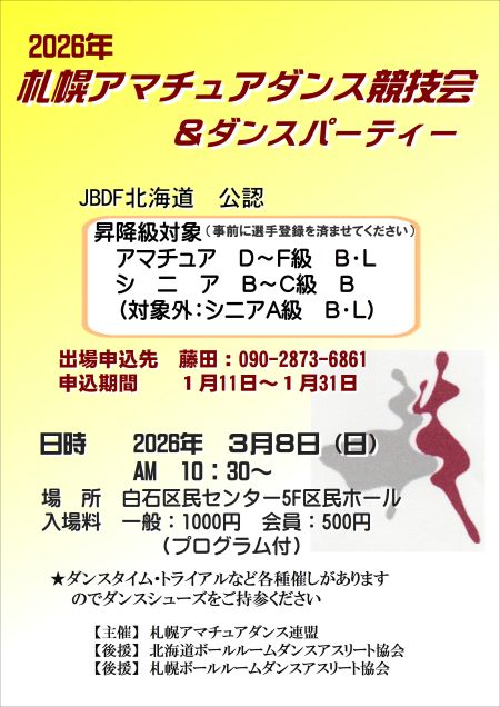 JBDF北海道の3大大会である北海道知事杯争奪北海道ダンス選手権大会。。